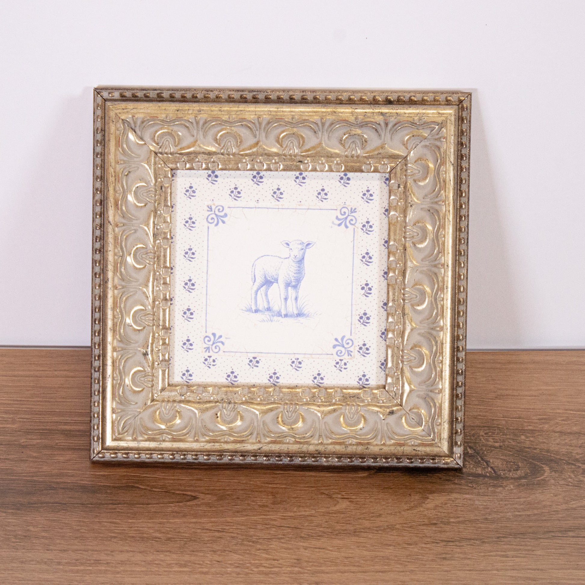 Blue Tile Lamb Framed Wall Art