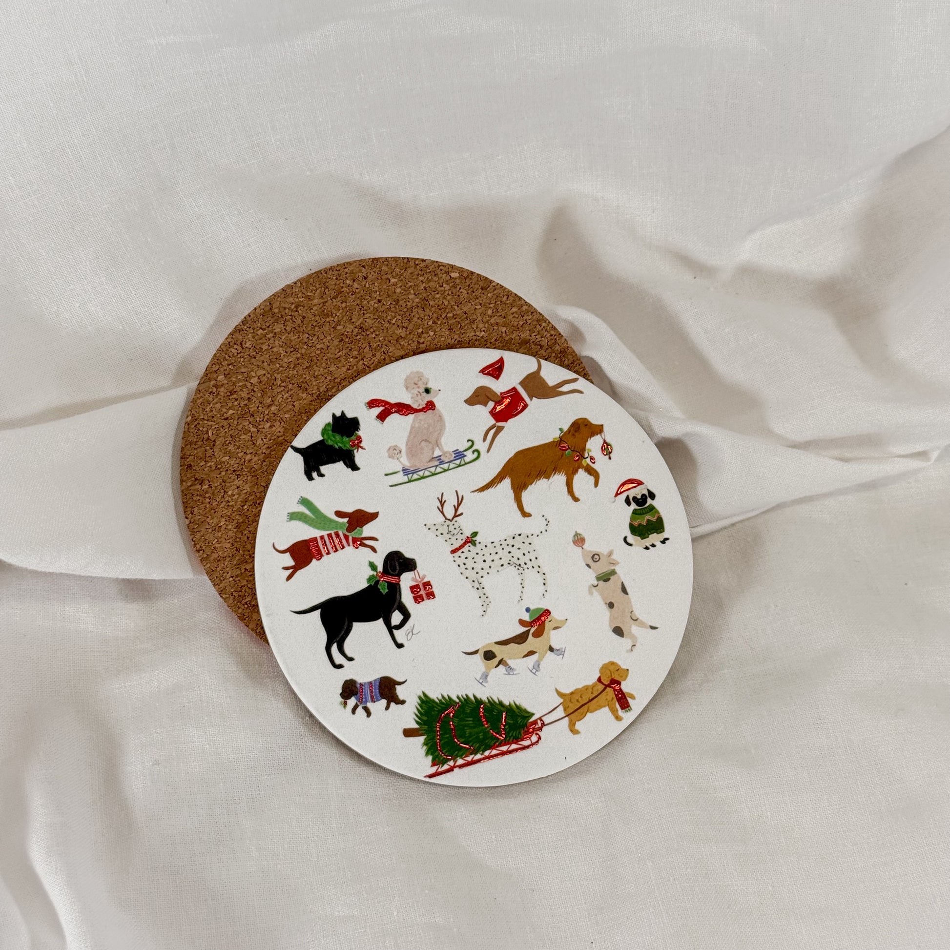 Christmas Dogs Cork Coaster