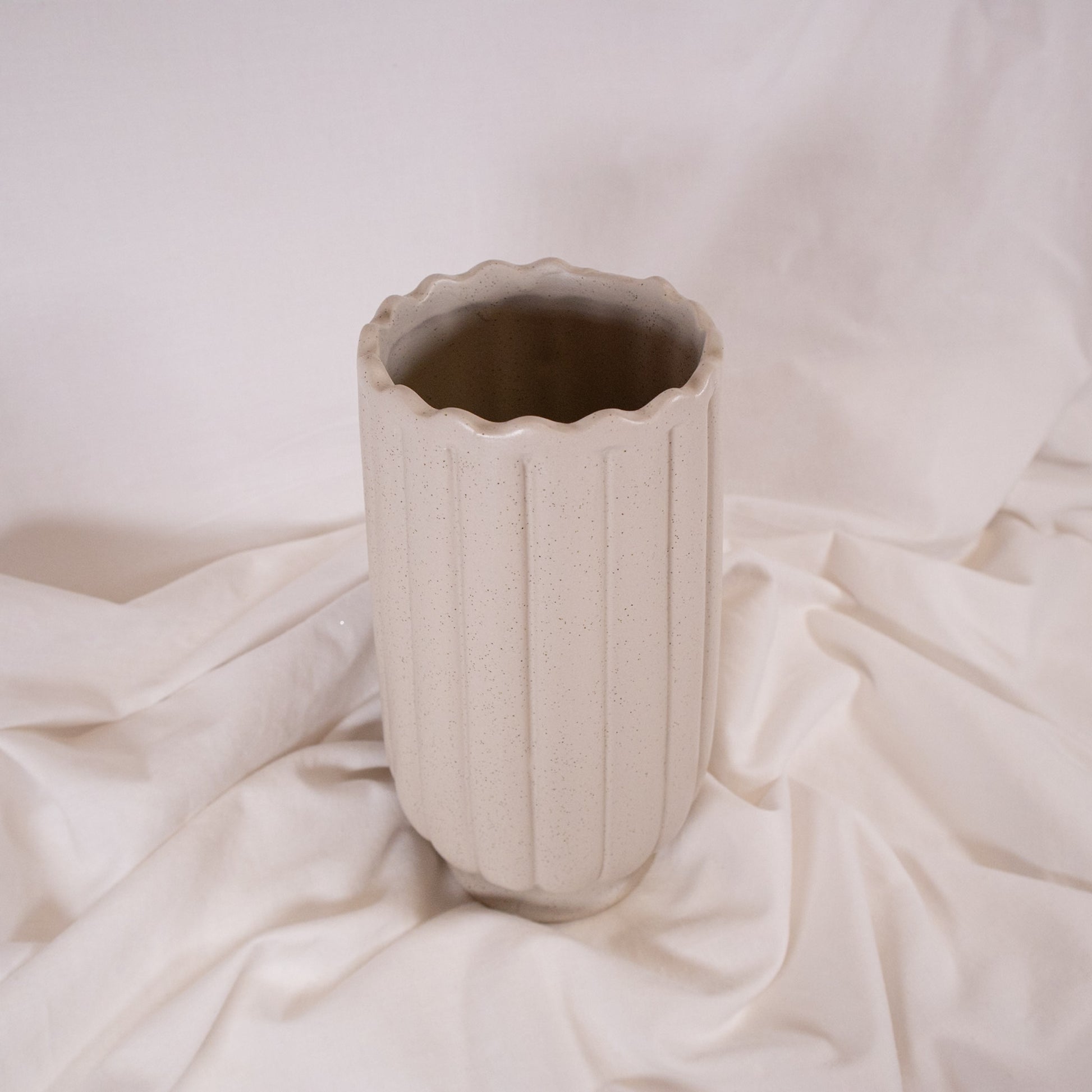 Neutral Scalloped Vase