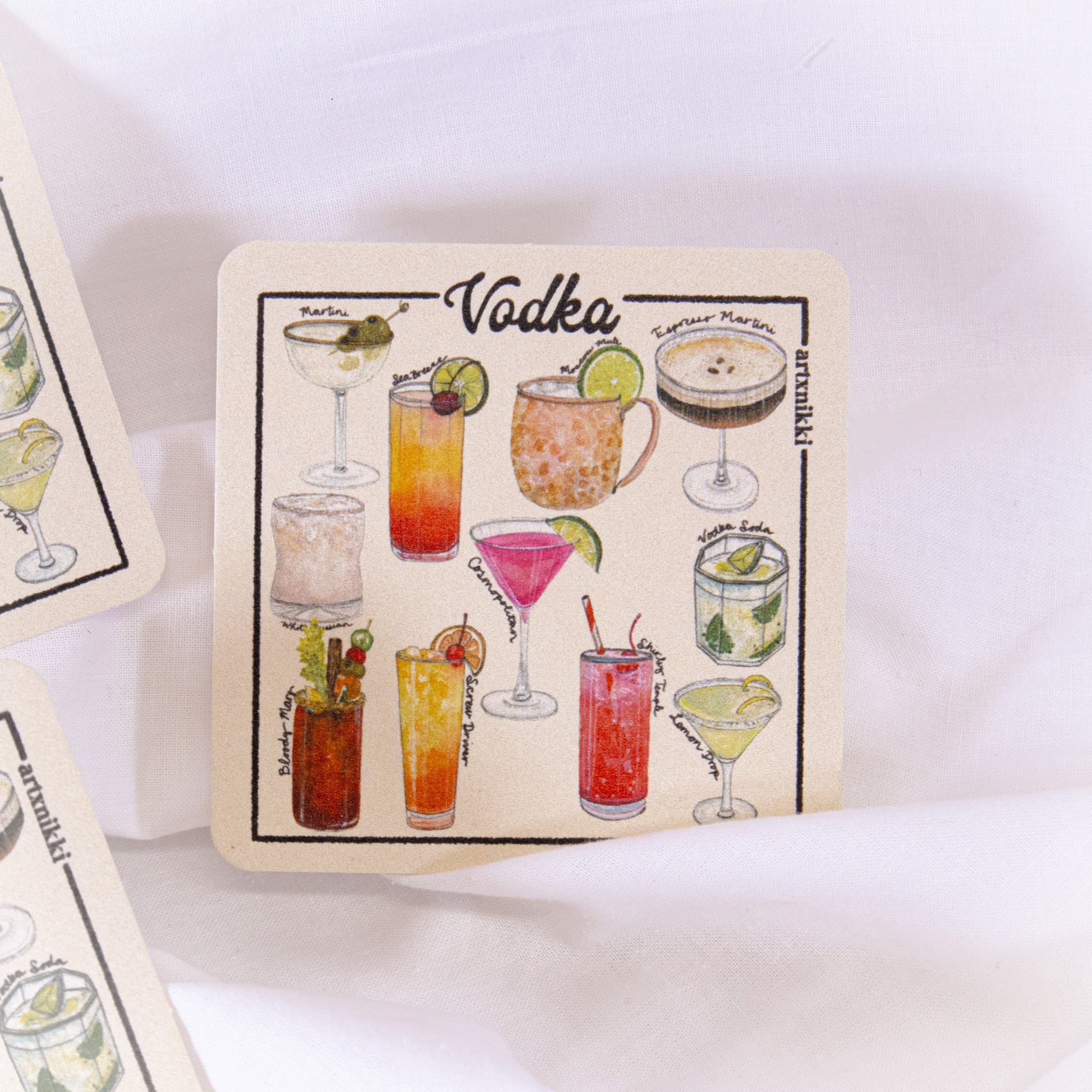 Feature a variety of classic vodka cocktails (same artwork on all 4 coasters).